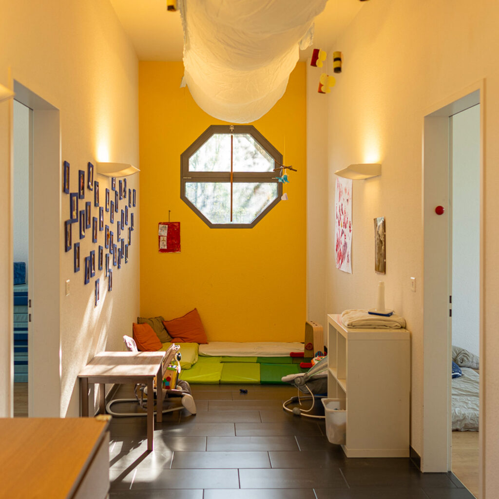 Die vielen hellen und warmen Räume sowie der sehr grosse Garten laden ein zum Spielen und Entdecken. Neben viel Platz für ein fantasievolles und kreatives Freispiel gibt es genügend Raum für Rückzugsmöglichkeiten für jedes Alter.